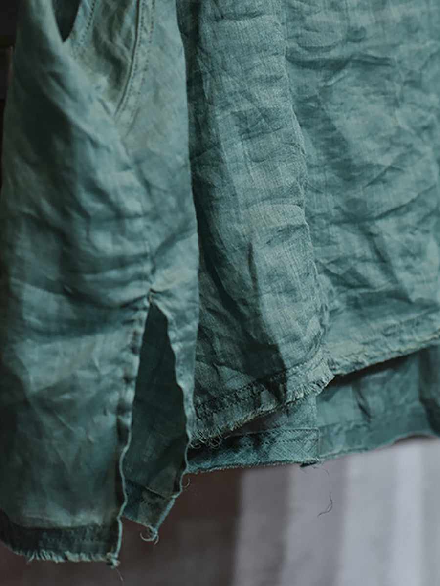 Tillverkad av 100 % Ramie-tyg med ett solidt mönster, denna vintageinspirerade väst har en O-ringning och är perfekt för de varma årstiderna vår och sommar.