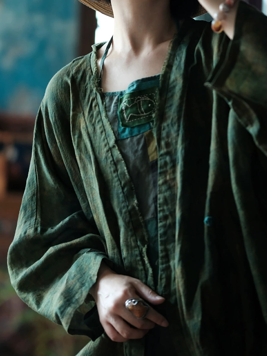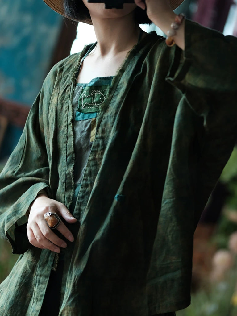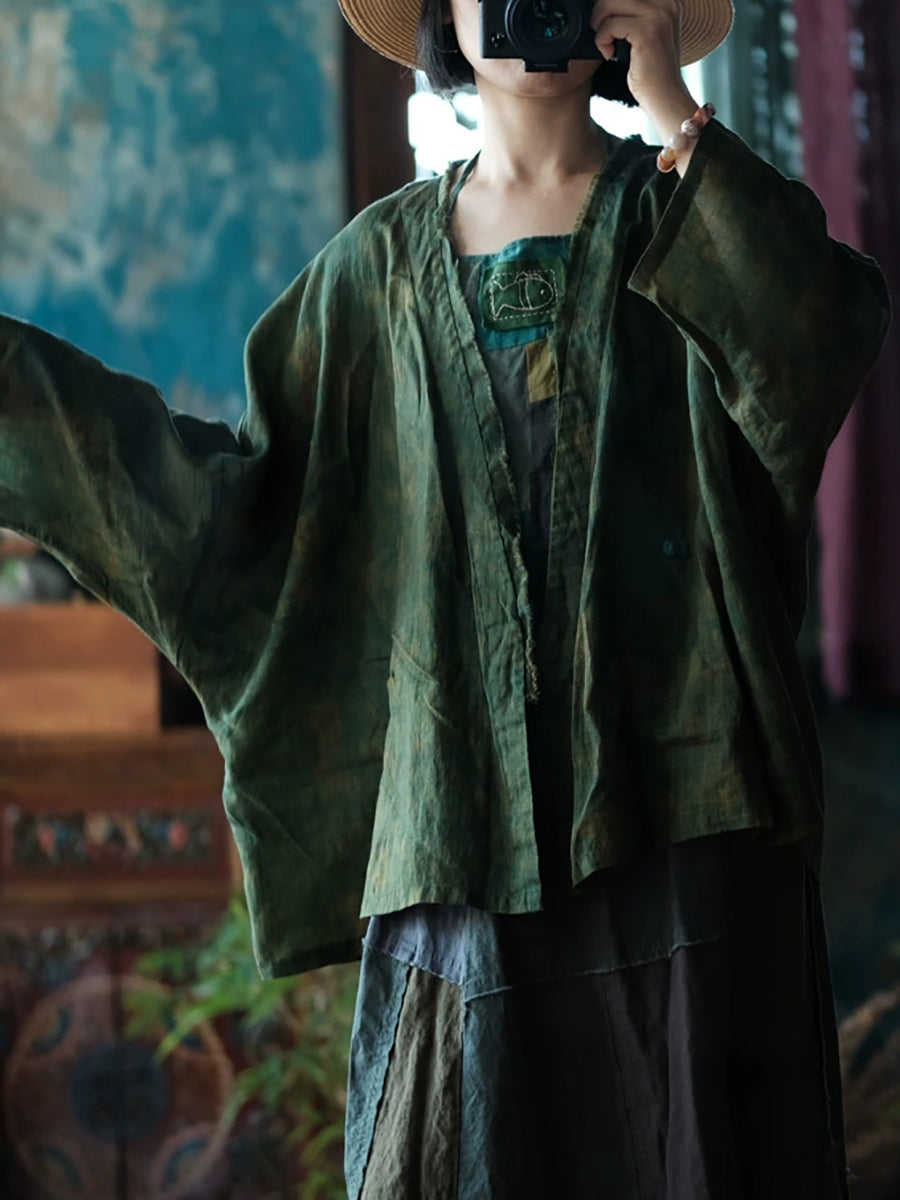 Dam Sommar Retro Tie-dye Linne V-ringad Skjorta Kappa
