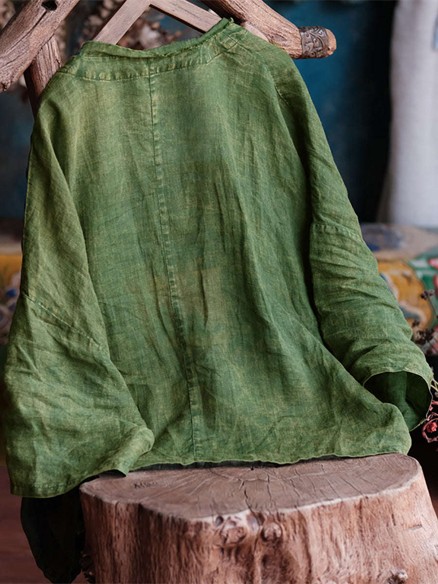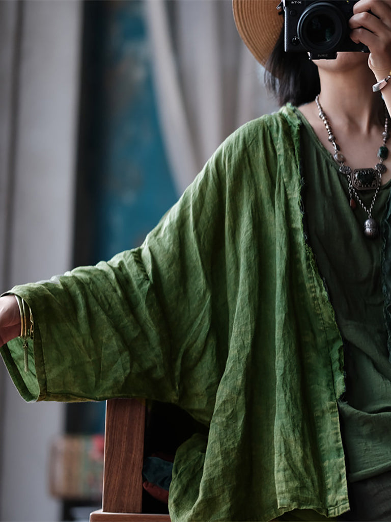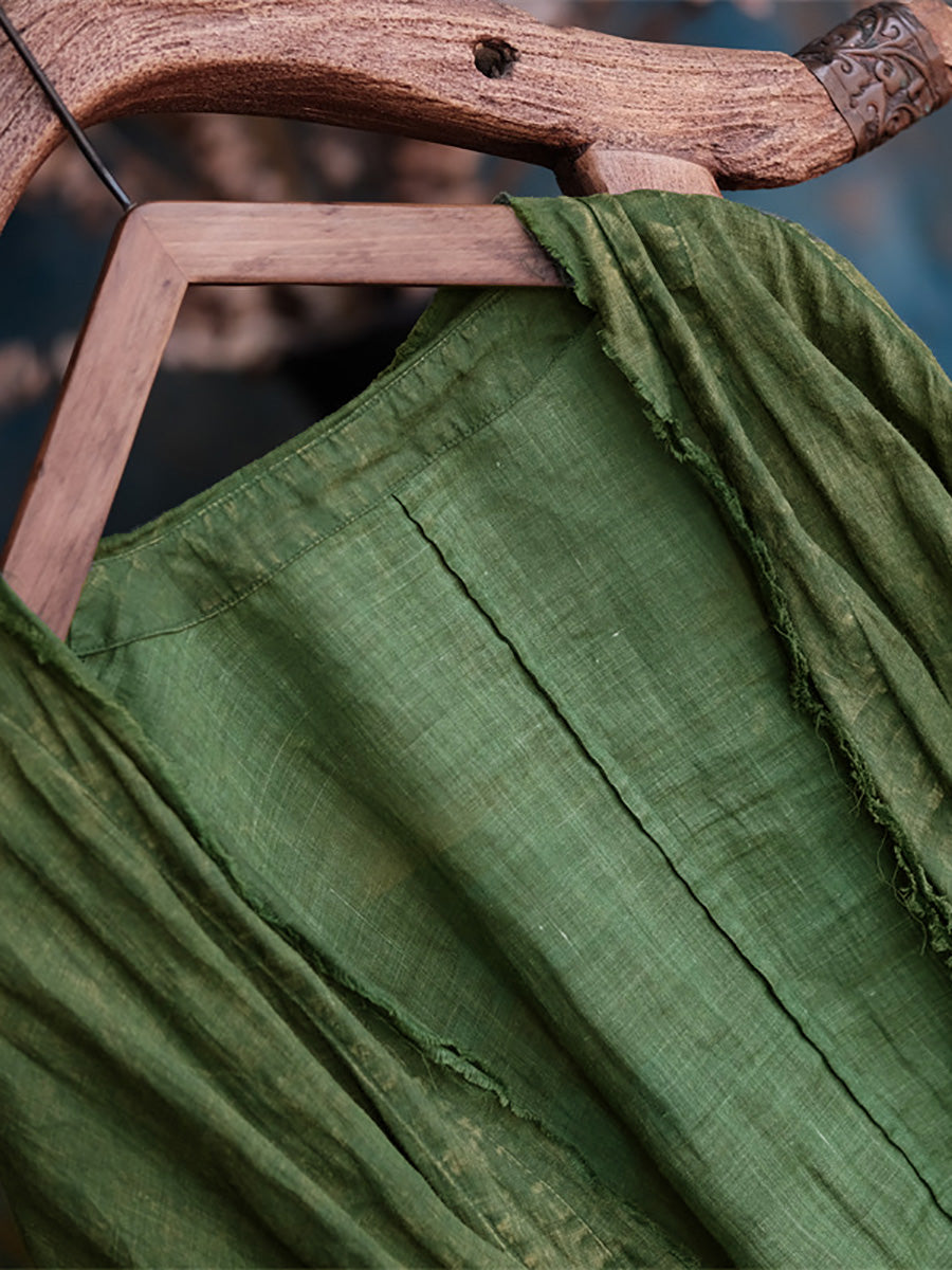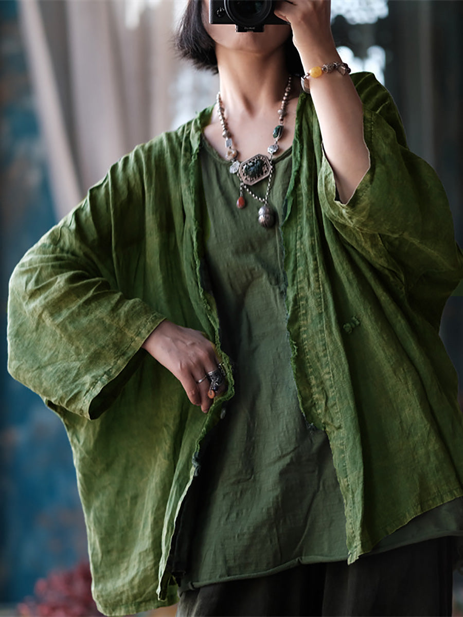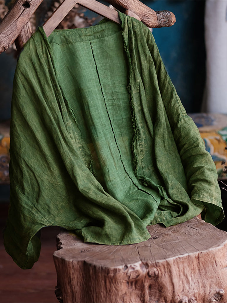 Damer sommar Retro slitna Raw-edge Ramie Shirt Coat
