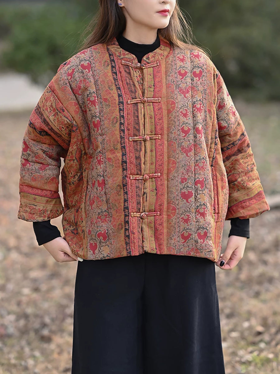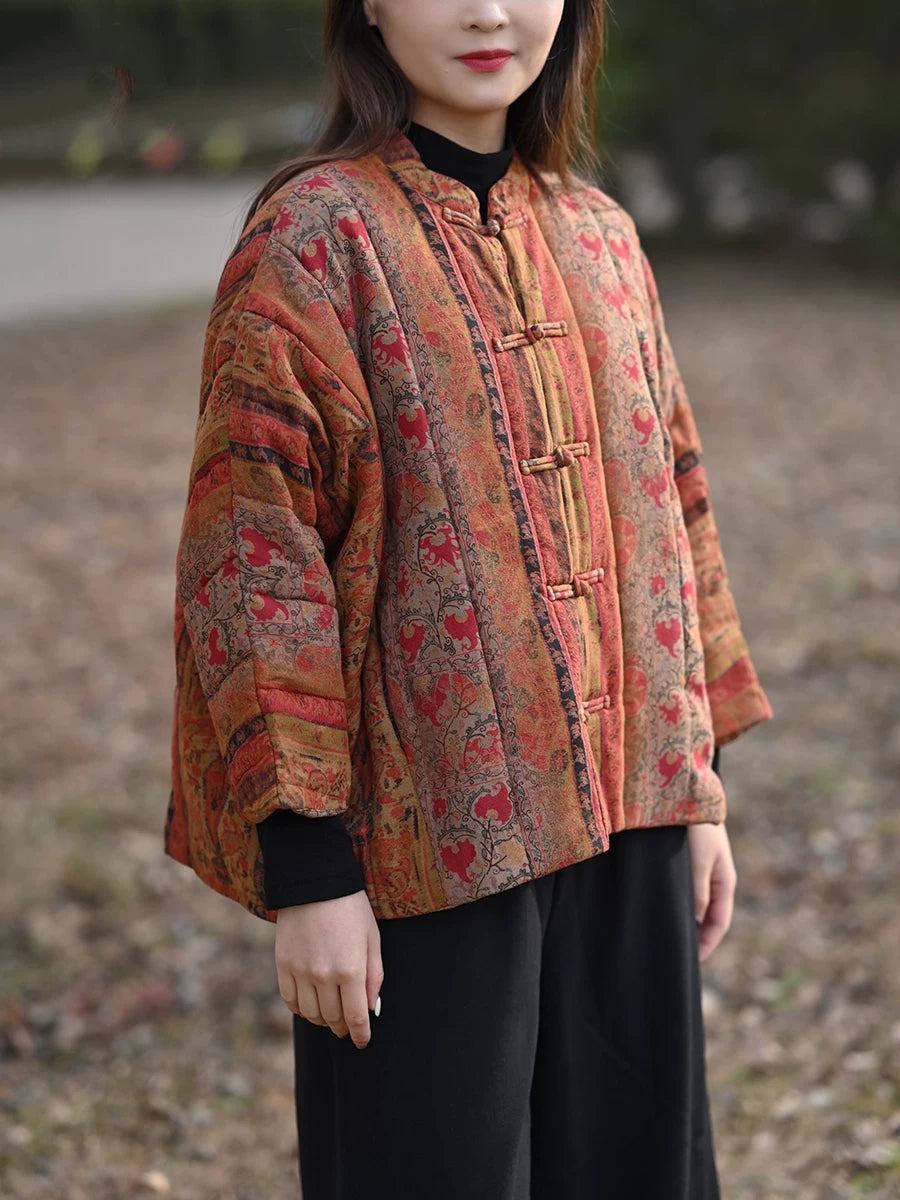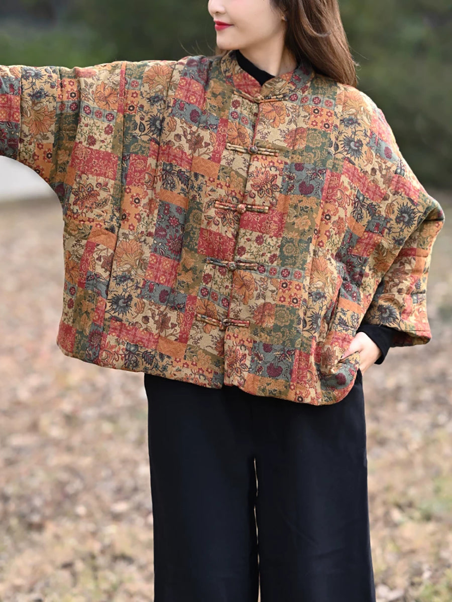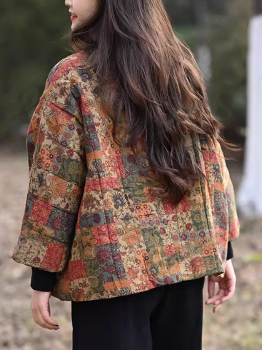 Kvinnors vinterblommiga lapptäcke med ståkrage vadderad kappa