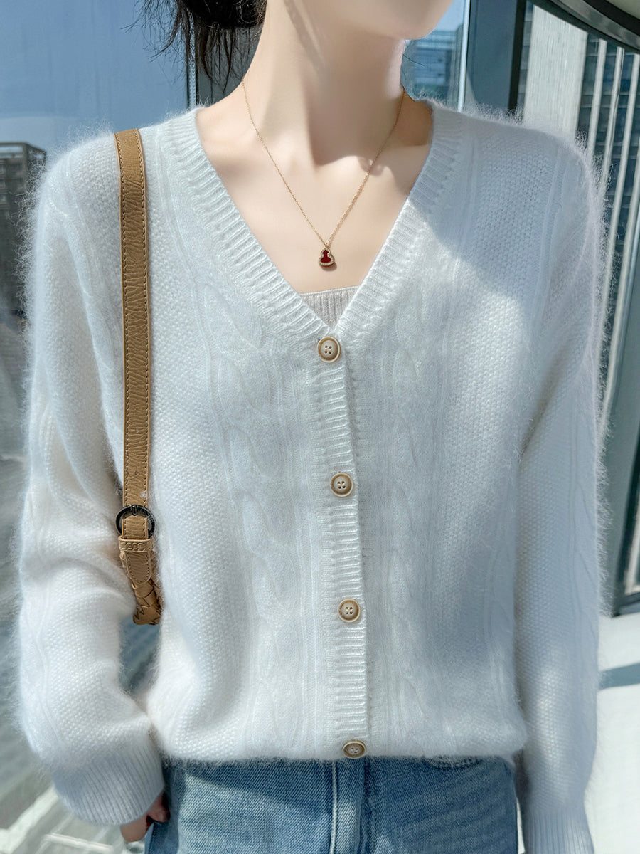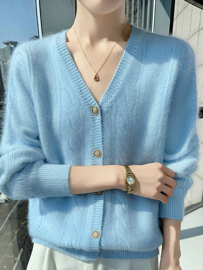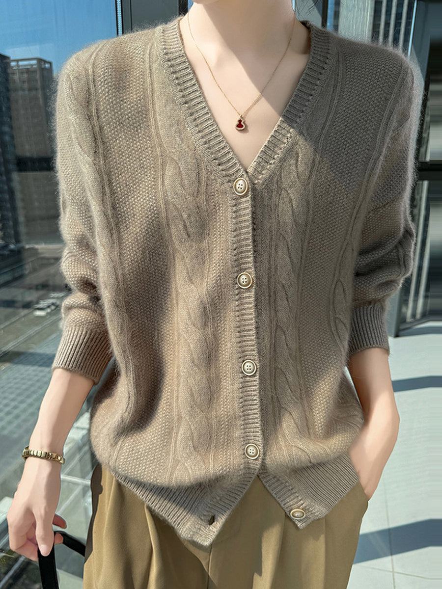 女士秋季休閒純色V領毛衣
