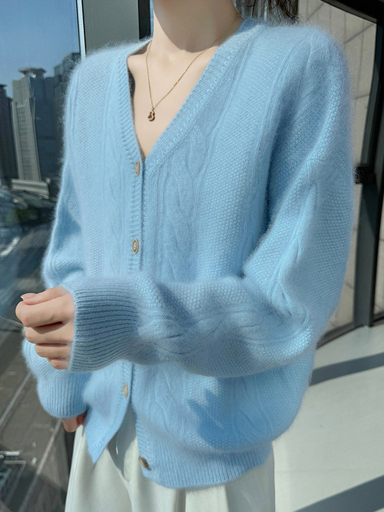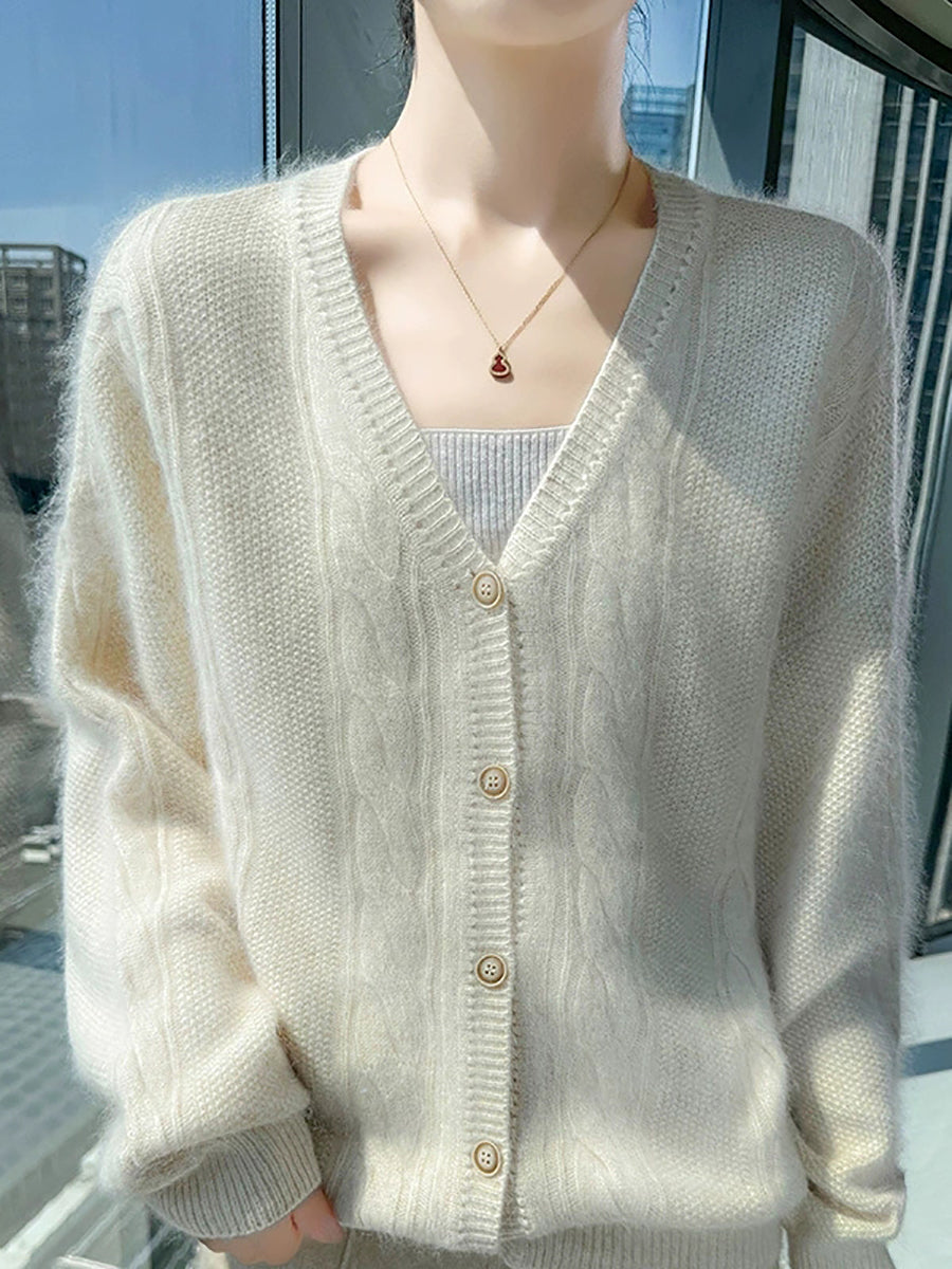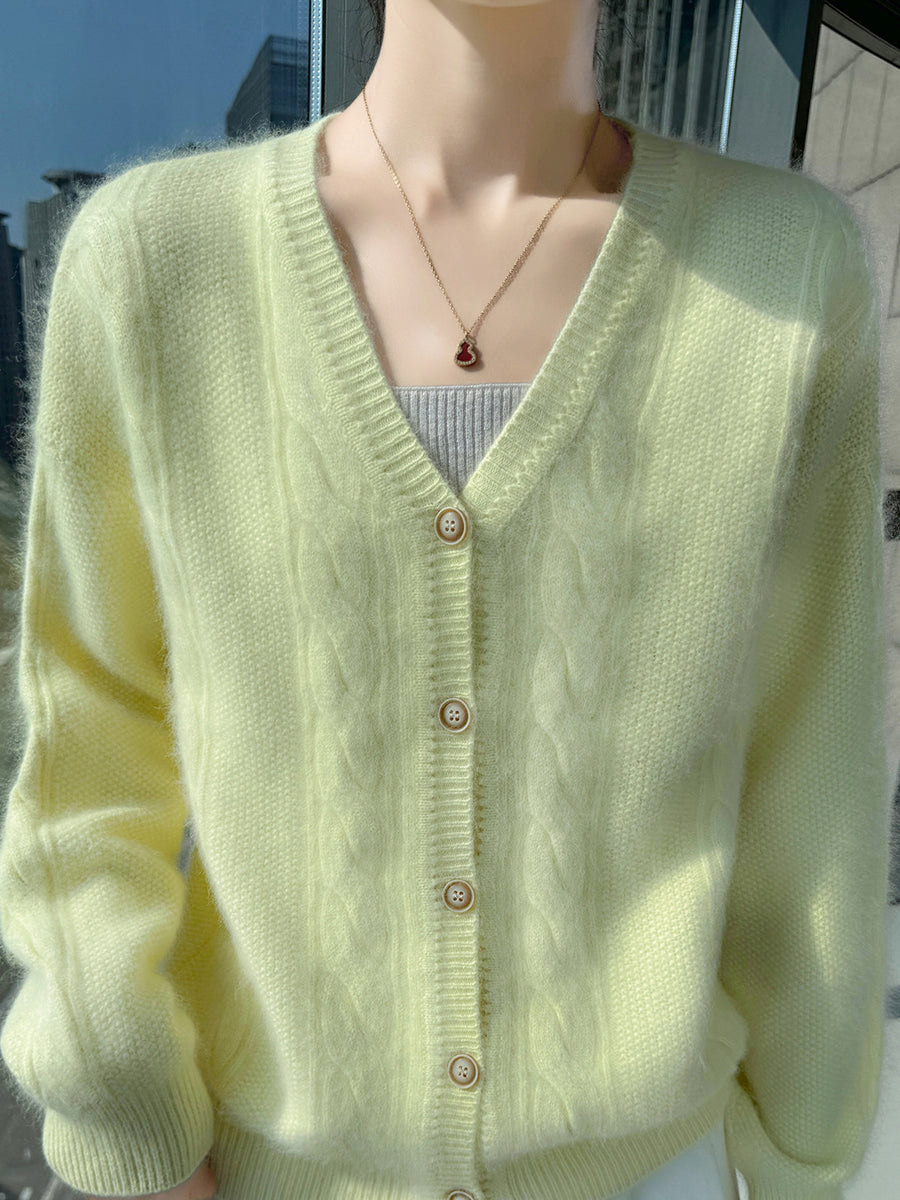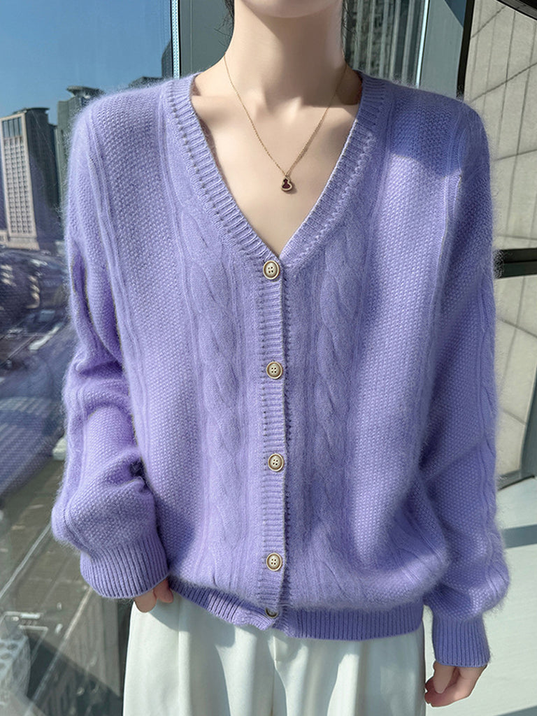 女士秋季休閒純色V領毛衣