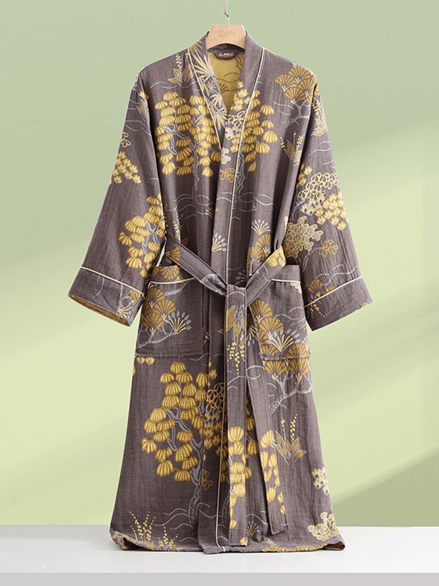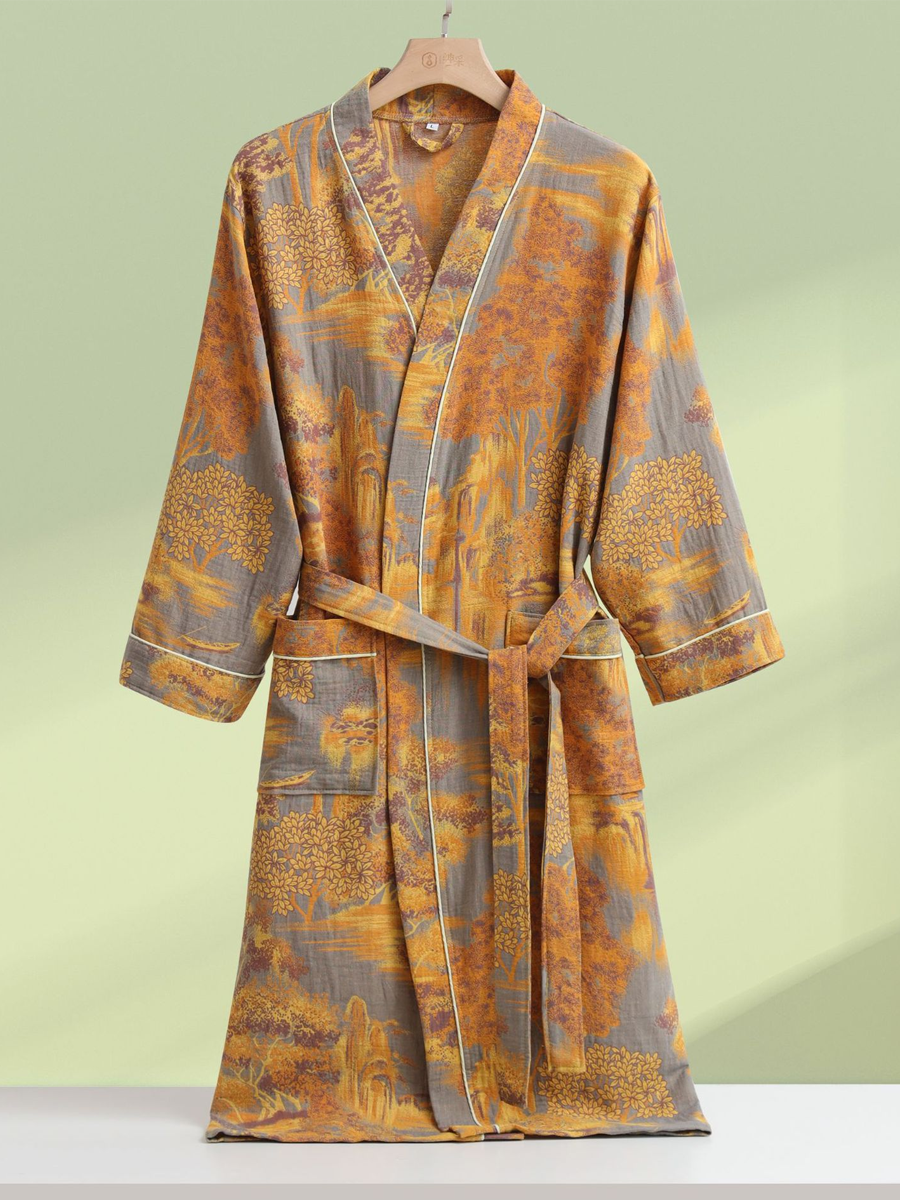 這款雙層紗質浴袍採用100%新疆優質棉製成,輕盈透氣,吸水性極佳。寬鬆的版型和柔軟舒適的布料帶來愜意放鬆的穿著體驗。優雅的花卉圖案、寬大的袖口、長袖和精緻的腰帶,完美融合了簡約與優雅。