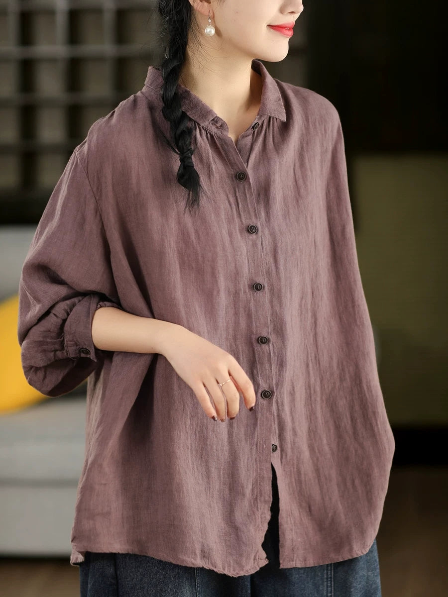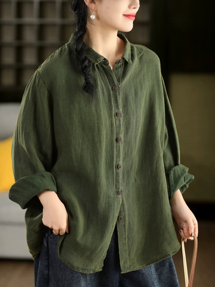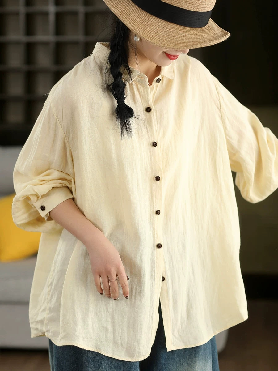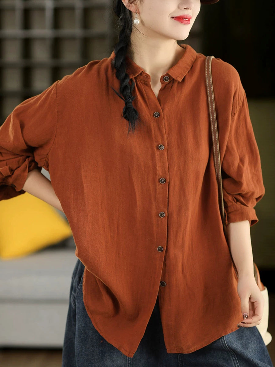 女士春季藝術純色100%棉翻領襯衫