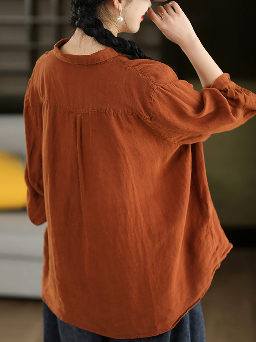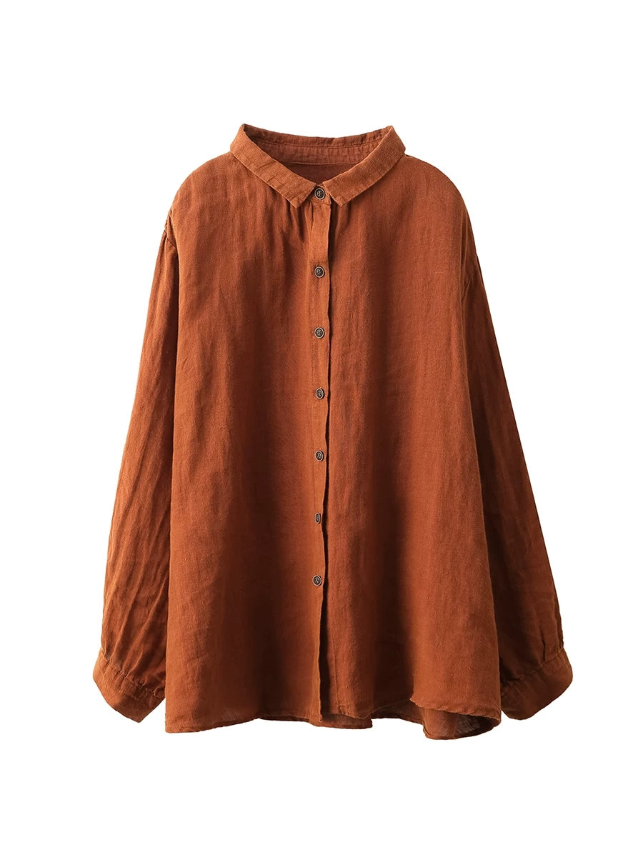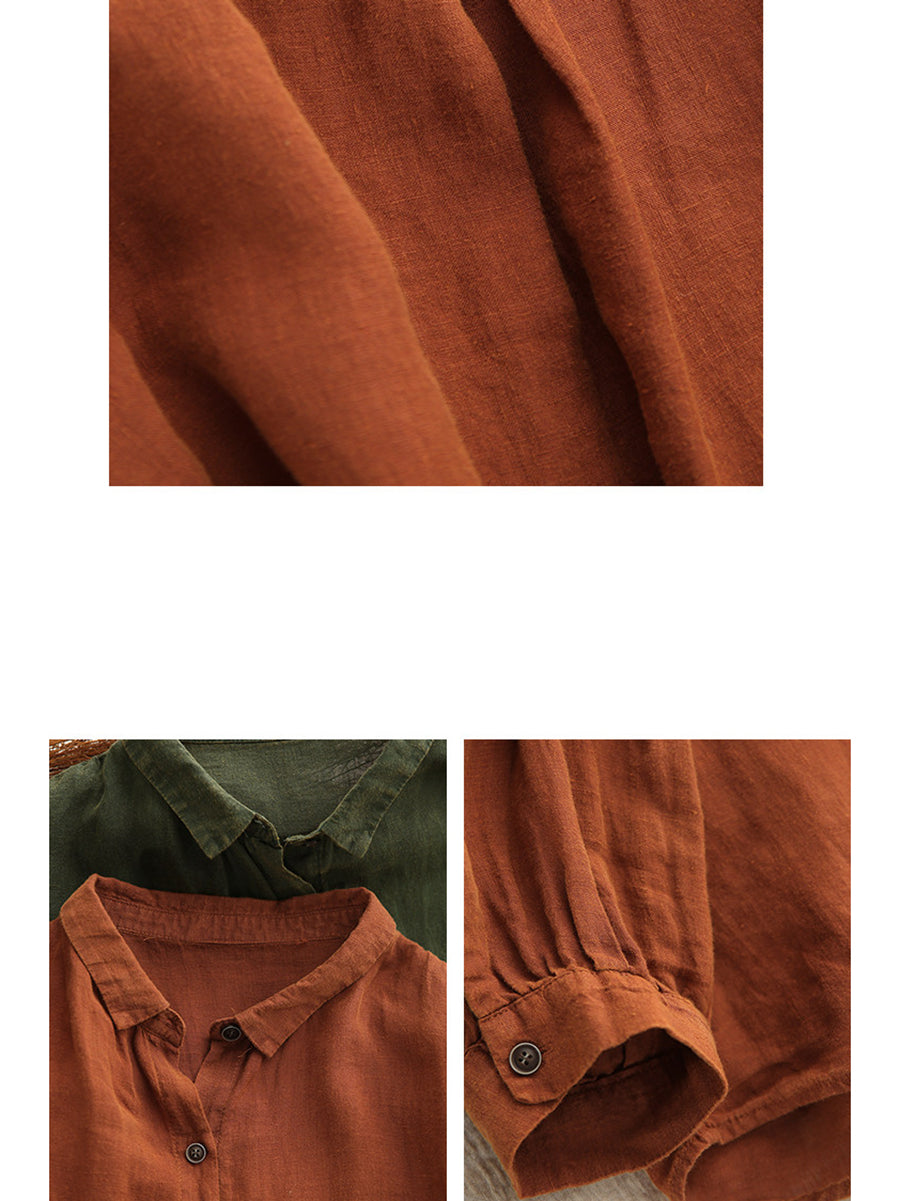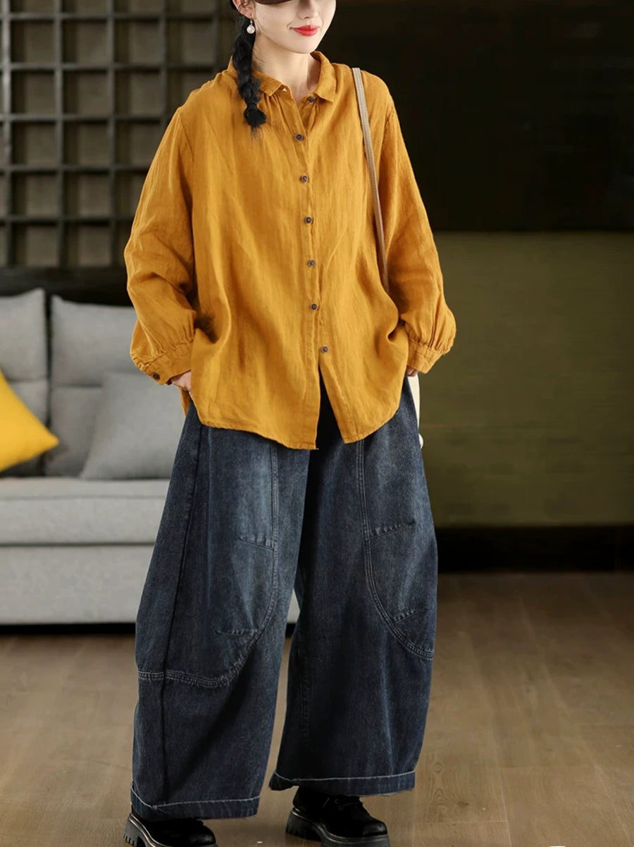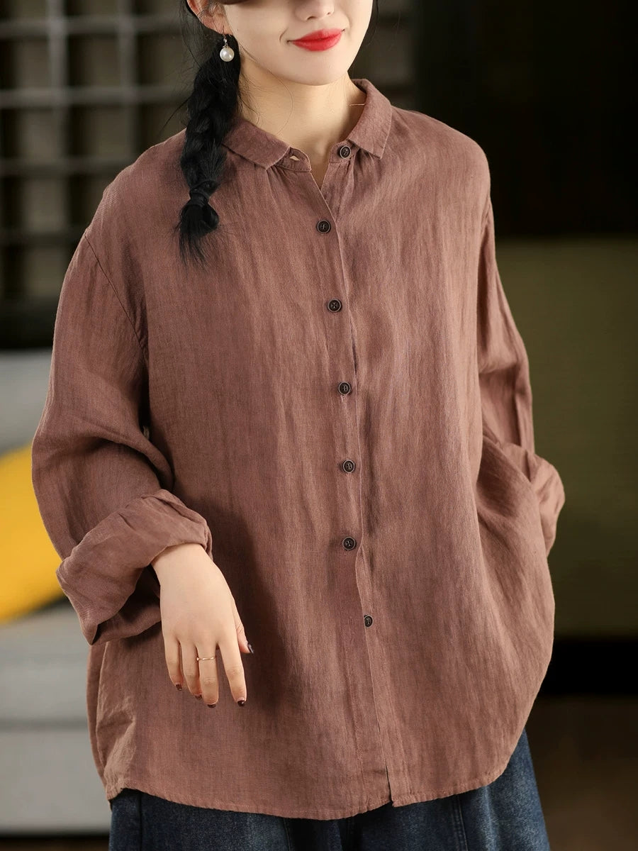 女士春季藝術純色100%棉翻領襯衫